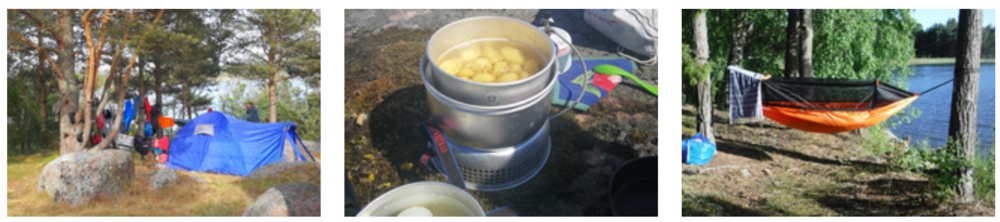 Majoitus: teltta/riippumatto, makuupussi, makuualusta